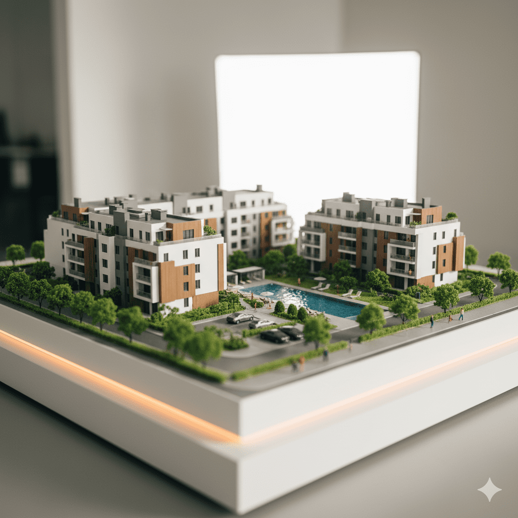 Detailed miniatures of homes and housing projects.